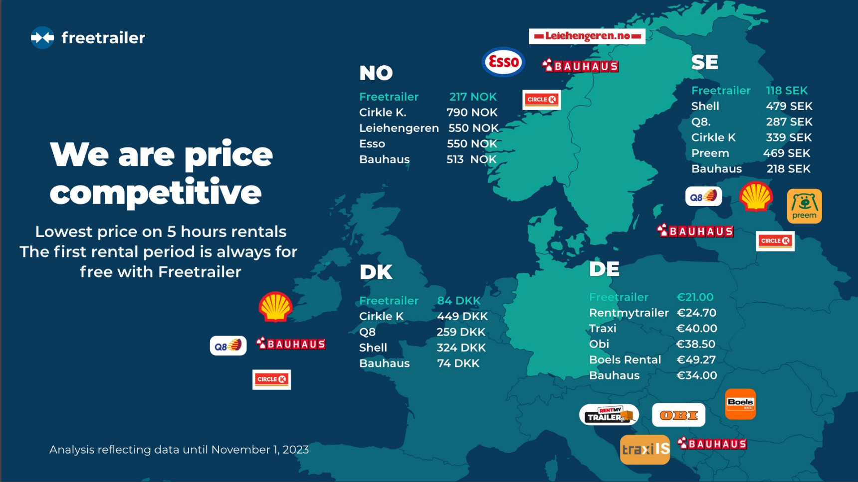 The price to rent a trailer in Norway is much more expensive than it is in the other countries and Freetrailer can therefore price their service higher and still remain competitive in terms of price. This creates a great opportunity for growth because they will likely realise higher margins from their operations in Norway by exploiting an underdeveloped market.